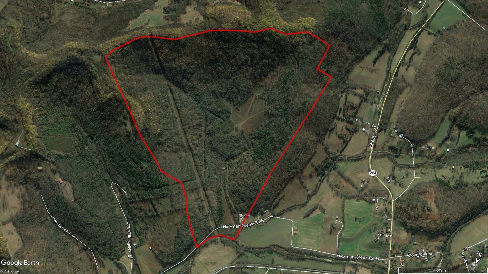 330 scenic acres located within 3 miles of I-40 in quite rural setting. Picturesque building sites w/ incredible views from 13 acre plateau. Mostly wooded, hilly terrain w/approximately 16 acres of pasture. 707 ft of road frontage, 3 acre bottom field, springs, several old homeplaces & nice creek running North to South through property & also joining Hickman Creek on the South boundary. Great wildlife cover on property & loaded with Deer & Turkey. Known locally for the high quality hunting.